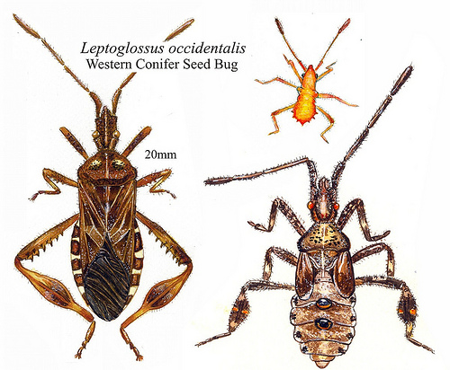 Both the Adults and Nymphs feed on Flowers and Fruit Cone seeds of a number of f conifer