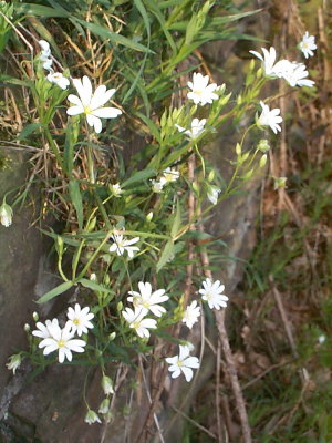 Widespread and common in open woodland and along rides and hedgerows. Leaves are narrow, fresh green and grass-like. Easily overlooked among foliage until white flowers appear April­June. These are 20 to 30mm across and have notched petals. Height up to 50cm